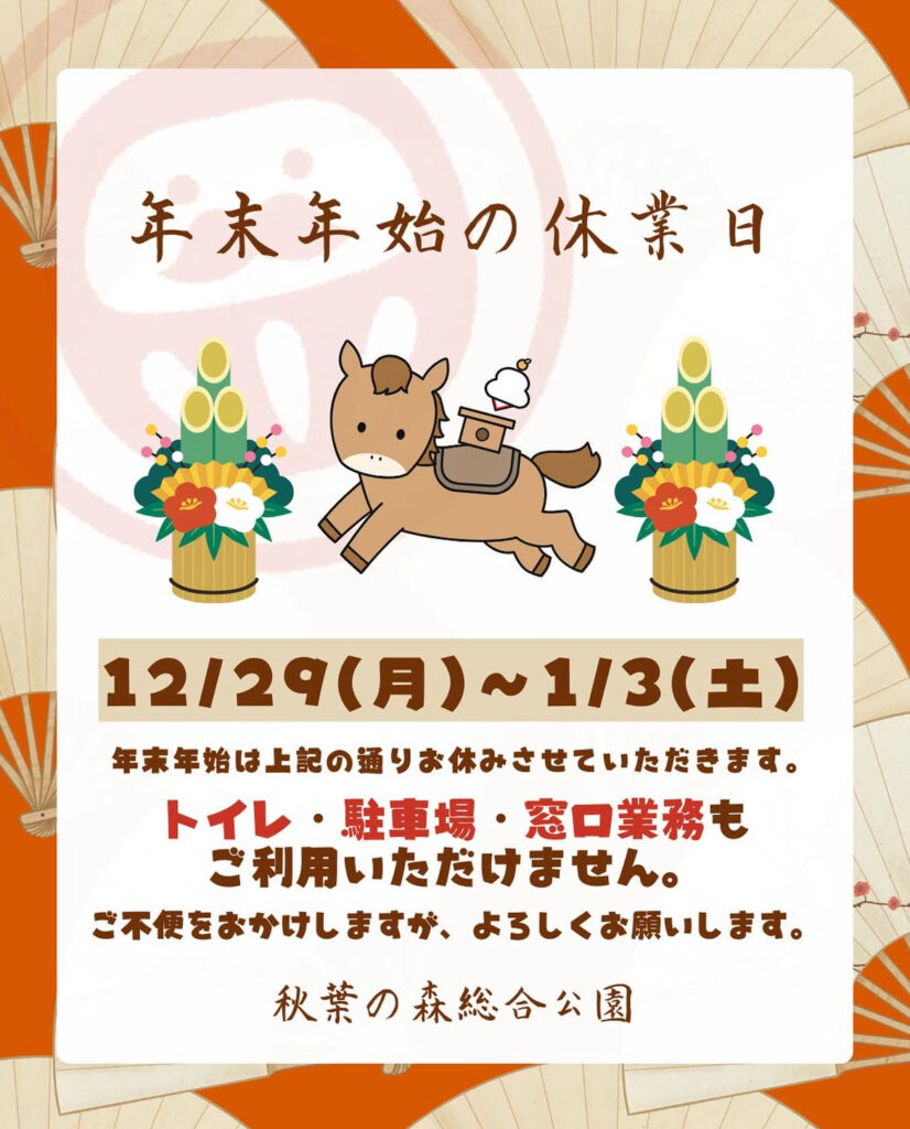 年末年始の公園窓口業務のお知らせ