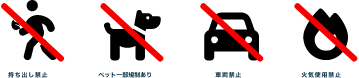 ・喫煙・たき⽕など⽕気の使⽤は禁⽌です。